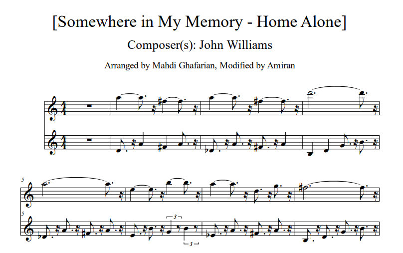 - "Somewhere in My Memory" from Home Alone Sheet Music (PDF)