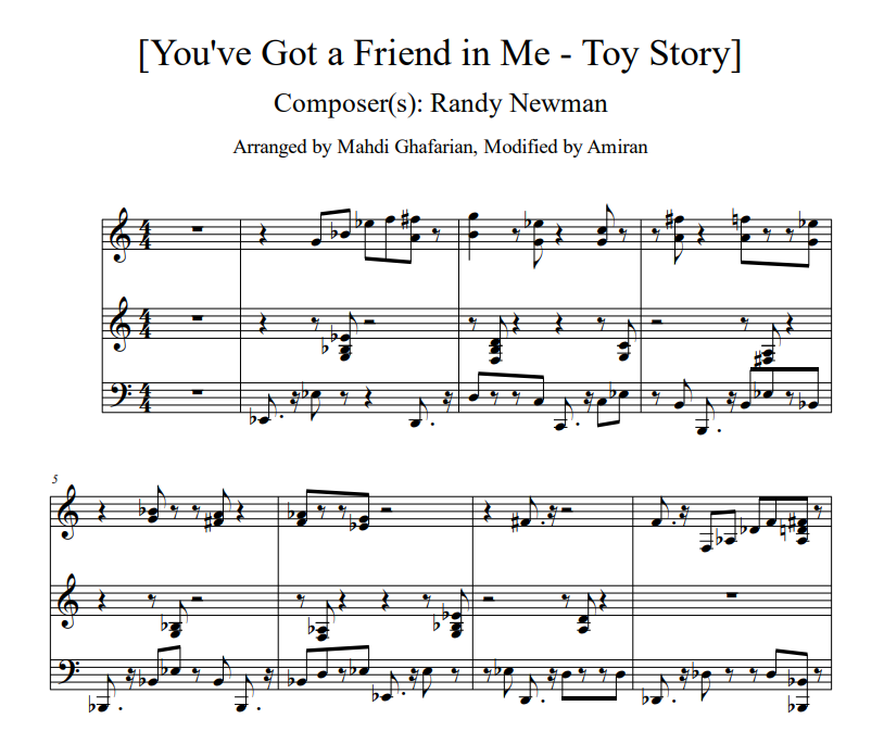 - "You've Got a Friend in Me" from Toy Story Sheet Music (PDF)